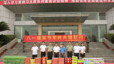 “八一”建军节之际,在这个特别的节日,双流县临空管委会副主任青长国等领导,四川金恒德总经理陈维秀、副总经理段南、党委书记周斌及公司员工先后前往双流县消防队、78649部队对一线广大官兵送上了炎热天气解暑的饮料、水果和节日的问候和祝福。